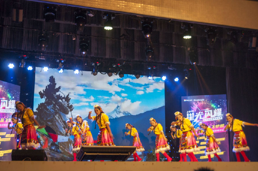 雪山在藏族同胞心中是神圣的象征,上海健康医学院附属卫生学校带来的歌舞《雪山姑娘》以独特的声调唱响了藏族对雪山的崇敬。