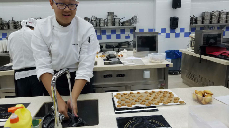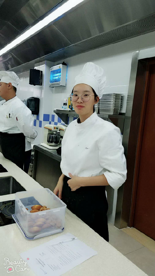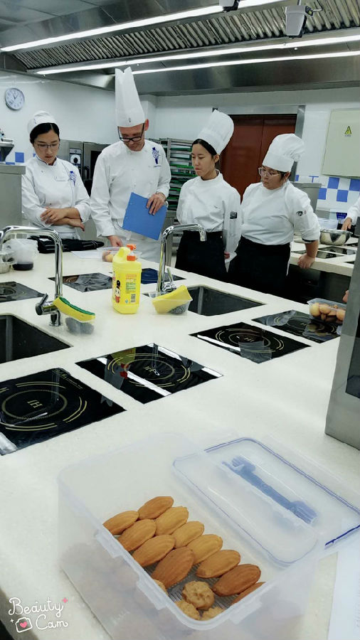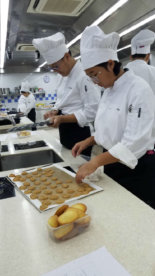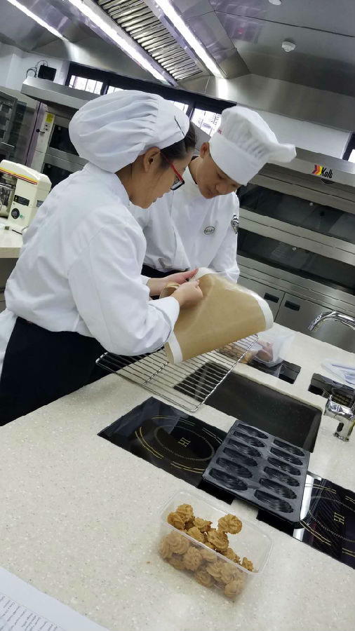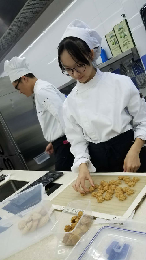 一次课学做两种西点,有些紧张哦!但是多数同学保质保量地完成了任务!加油!