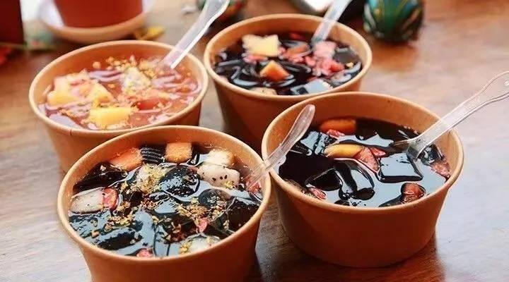 果冻状的口感佐以花生碎葡萄干瓜子仁等配料甜度适中冰爽绵长分为红糖和桂花两种口味