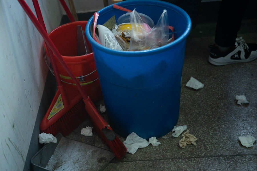 B去走廊上找垃圾分类桶