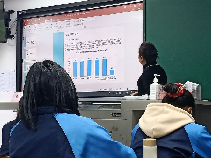 讲述人王洁丽老师是一位资深的职场工作人,她以自生经历为例,向同学们阐述了自己的工作经历与心得体会。现在的就业形势并不乐观,讲座上她清晰明了地指出了现阶段就业形势的严峻之处,各类行业均有受到疫情冲击,对于即将步入职场的19级同学们来说,这无疑是一个巨大的挑战。