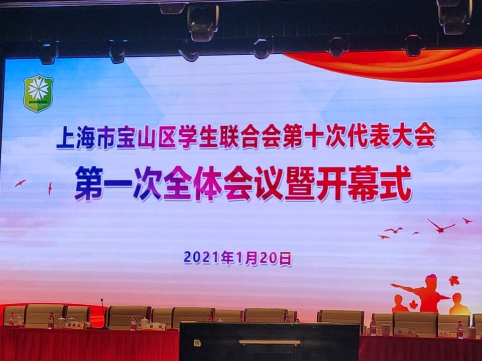 彩旗飘飘,天色正好。2021年1月20日早上八点半在宝山区青少年活动中心召开了上海市宝山区学生联合会第十次代表大会。与会人员有105名正式代表、宝山区红理会代表、各兄弟区学联秘书长、各街道团委书记、社团领奖学生代表、各校分管领导以及团区委领导。