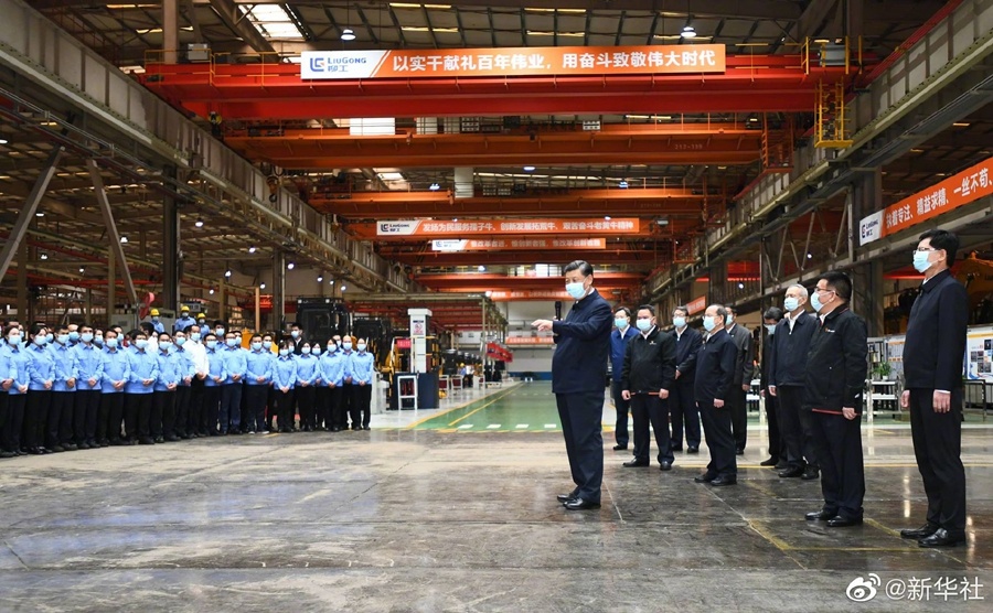 26日下午,正在广西柳州考察调研的习近平总书记,先后来到广西柳工集团有限公司、柳州螺蛳粉生产集聚区,了解企业改革创新、制造业和特色产业发展情况。(文字记者:张晓松 朱基钗 摄影记者:鞠鹏 谢环驰 殷博古)