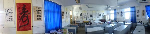 走进这间教室就会闻到纸、墨、笔、砚的气息,这就是我校的--绿丝文学社!