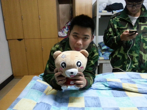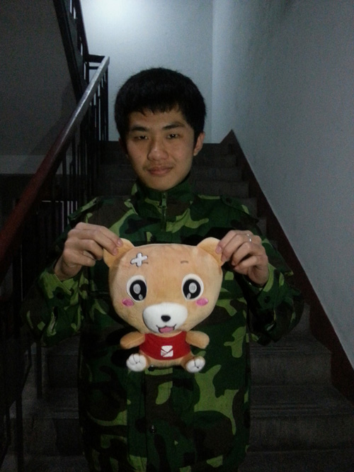 年轻的教官还有几天就要离开军营了,易班熊就留给教官做个纪念吧。纪念大家 一起训练的美好时光。
