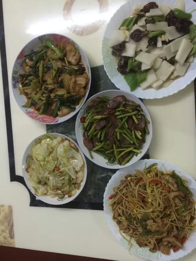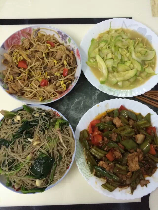 这些菜都是姐姐亲手烧的菜,也是拿手菜。色香味俱全,味道可口。荤素搭配营养,我最喜欢的是西红柿炒鸡蛋!我喜欢吃西红柿不是很喜欢吃蛋,最喜欢里面的汤汁,把西红柿炒鸡蛋的汤汁和米饭拌在一起,味道好极了!姐姐手艺真是不错值得夸赞!和妈妈做的饭菜味道很像!还是熟悉的味道!