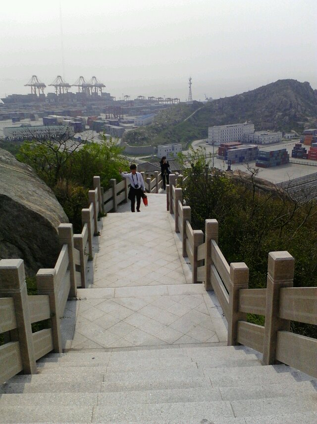上次在家闲得无聊跟哥哥姐姐们去爬山,,这是东海大桥附近的一个小山包 不是很高但是爬上去还是把我们累的够呛。山上很多大石头开始必须走小路爬石头走草丛才能到达有楼梯的地方。对于我们这些不怎么运动的人来说真是个小挑战,不过最后我们还是坚持爬上了山顶看到了山下美丽的风景,这次旅行也算是值了。