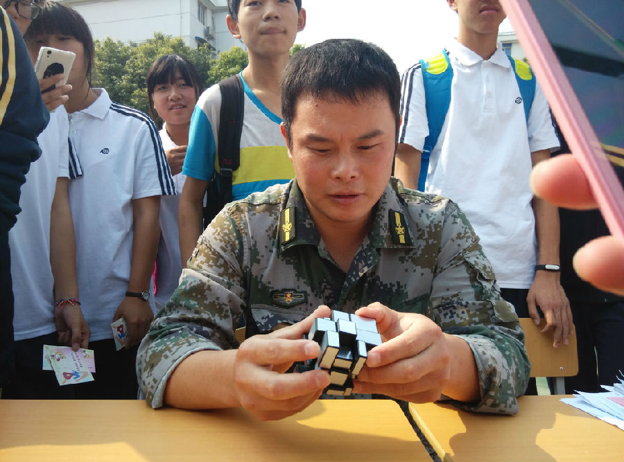(黄教官也来参与游戏啦!玩起了高阶魔方!)